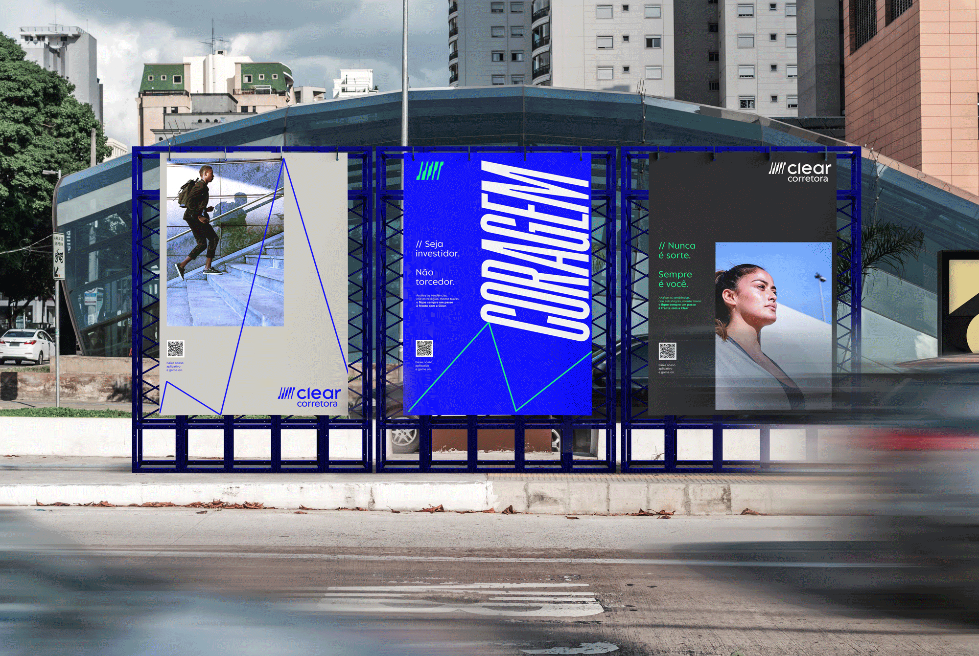 We were invited by Tátil Design to create a font family for XP Clear, one of the XP Inc group brokers. Clear is focused on investors with a bold profile, who are willing to take greater risks in order to achieve greater returns. Many of these investors play sports in the morning before work. The adrenaline present in both activities is a common point between them.