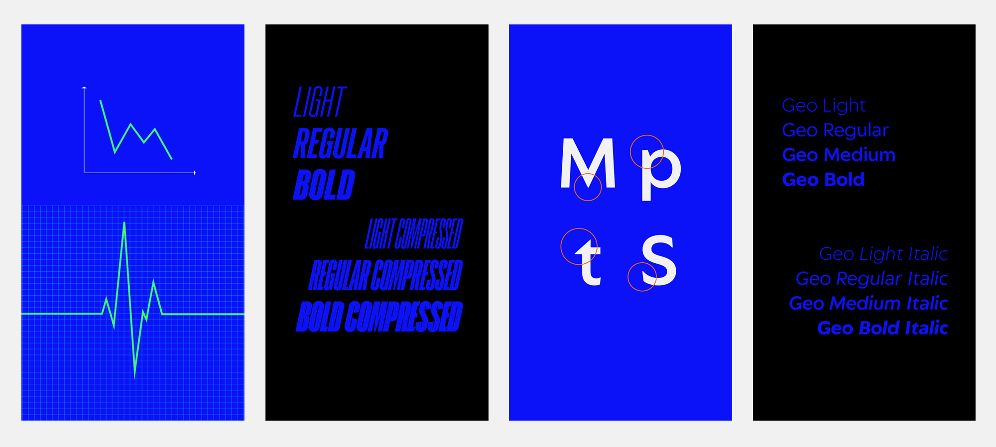 From there, we created the typeface based on both the graphic element of the identity and its logo. The fonts have a dynamic, high-pitched voice that alludes to the idea of movement.